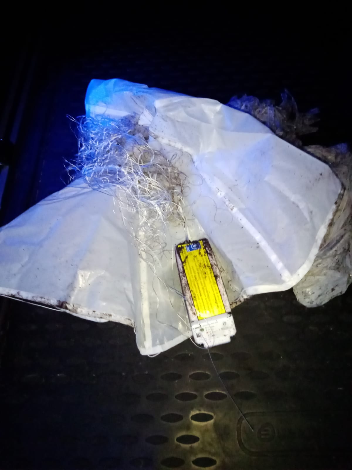 Die Mittagssonde von Norderney wurde bei der Landung durch den aufgeblähten Schirm bei Südwest Wind mit 4-5 Bft eine ganze Strecke über den Acker gezerrt. So sah das Gespann auch aus. Alles konnte nach einem 250m Marsch über einen Acker komplett geborgen werden.